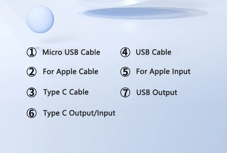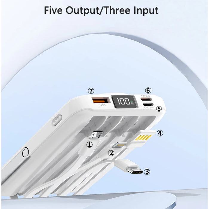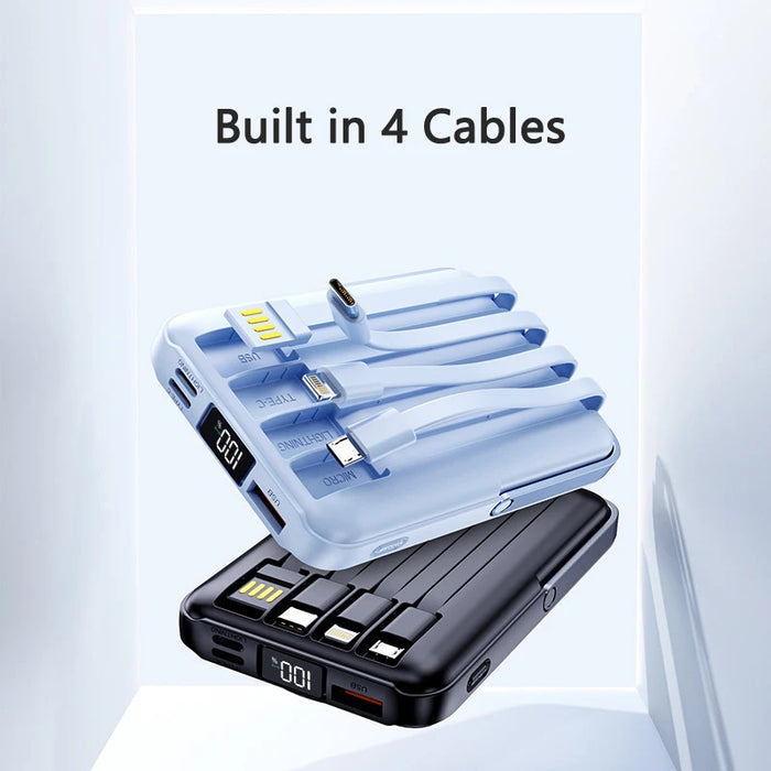 Built-in Cables: Comes equipped with built-in Lightning, Micro, Type-C, and USB cables, making it suitable for a wide range of devices.