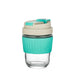 This glass drinking cup features a thoughtful lid design that allows two drinking options — direct sip or straw. Wrapped in a soft silicone sleeve, it offers comfort, control, and timeless simplicity for both warm and cold beverages.